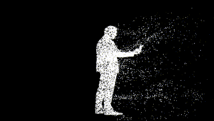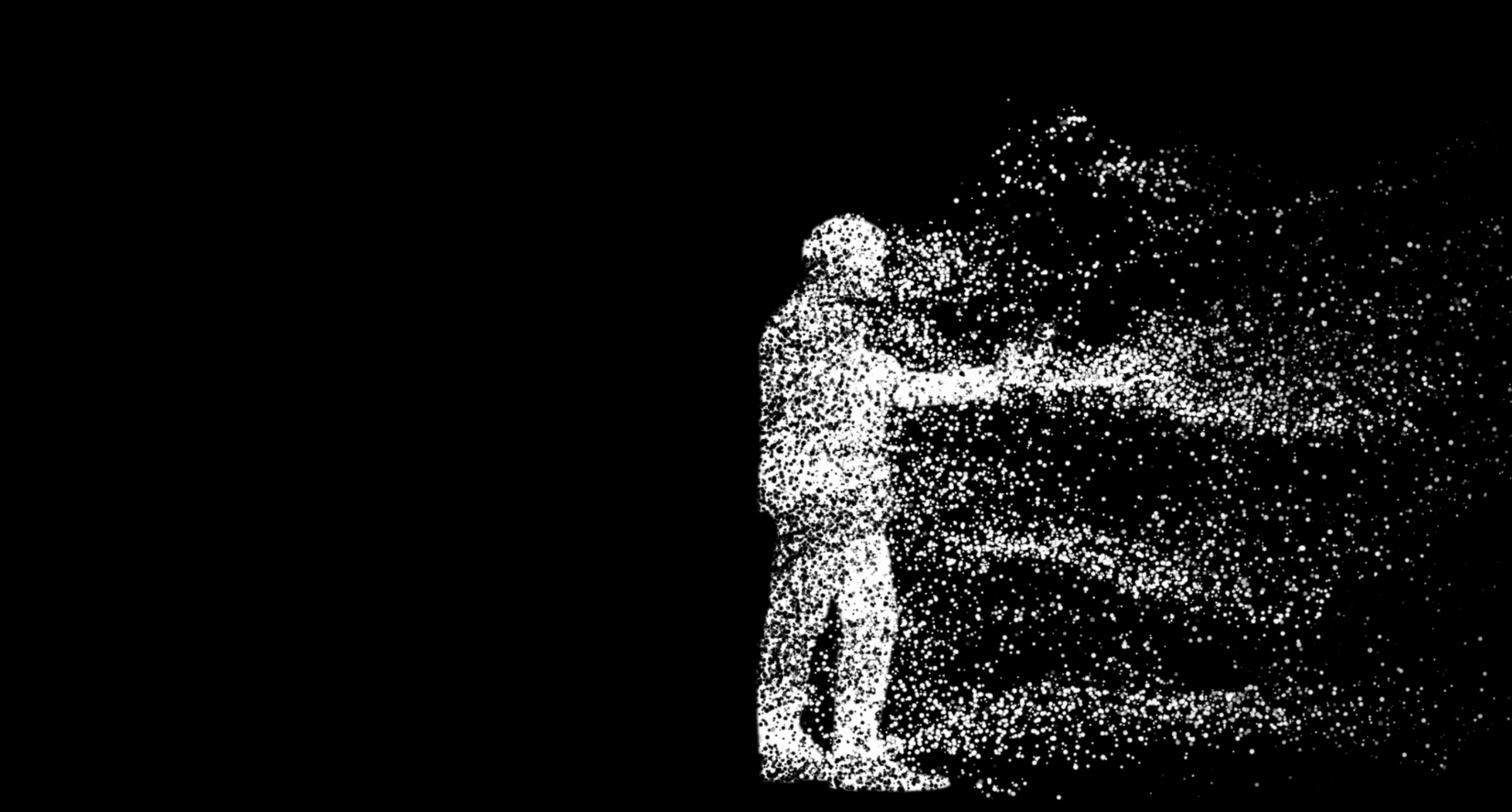 Standing in front of the first screen, the audience sees their silhouettes slowly fade into ashes, representing the passage of time.